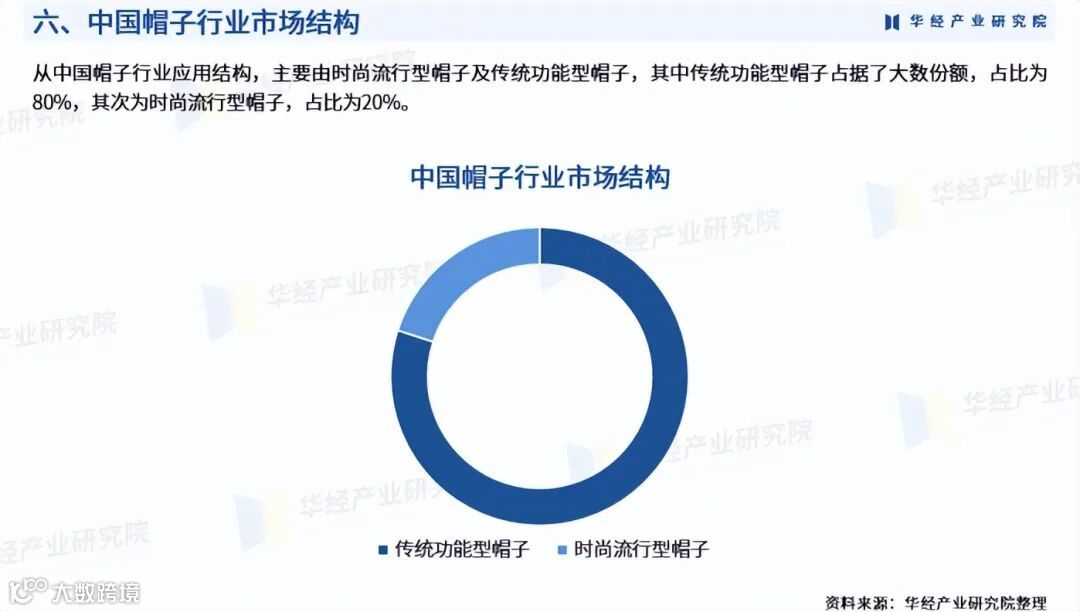 从应用结构看,传统功能型帽子占比80%,时尚流行型占20%。行业企业数量众多,以中小企业为主,市场格局分散。产能领先企业包括飞达帽业控股有限公司、青岛前丰国际帽艺股份有限公司、浙江高普服饰有限公司、中山伟立纺织品有限公司等。