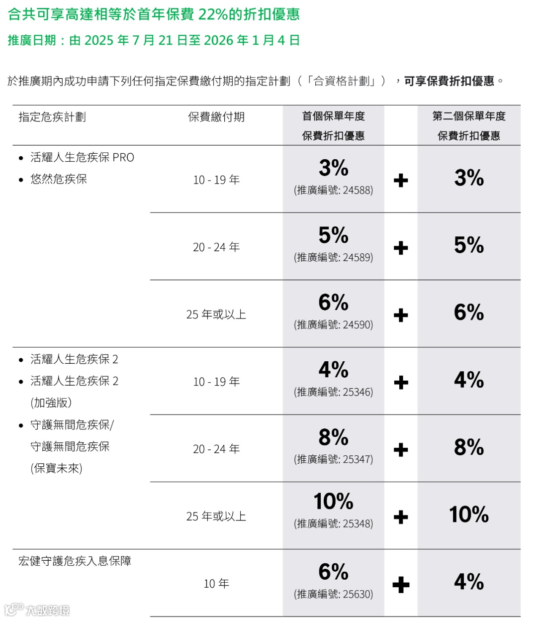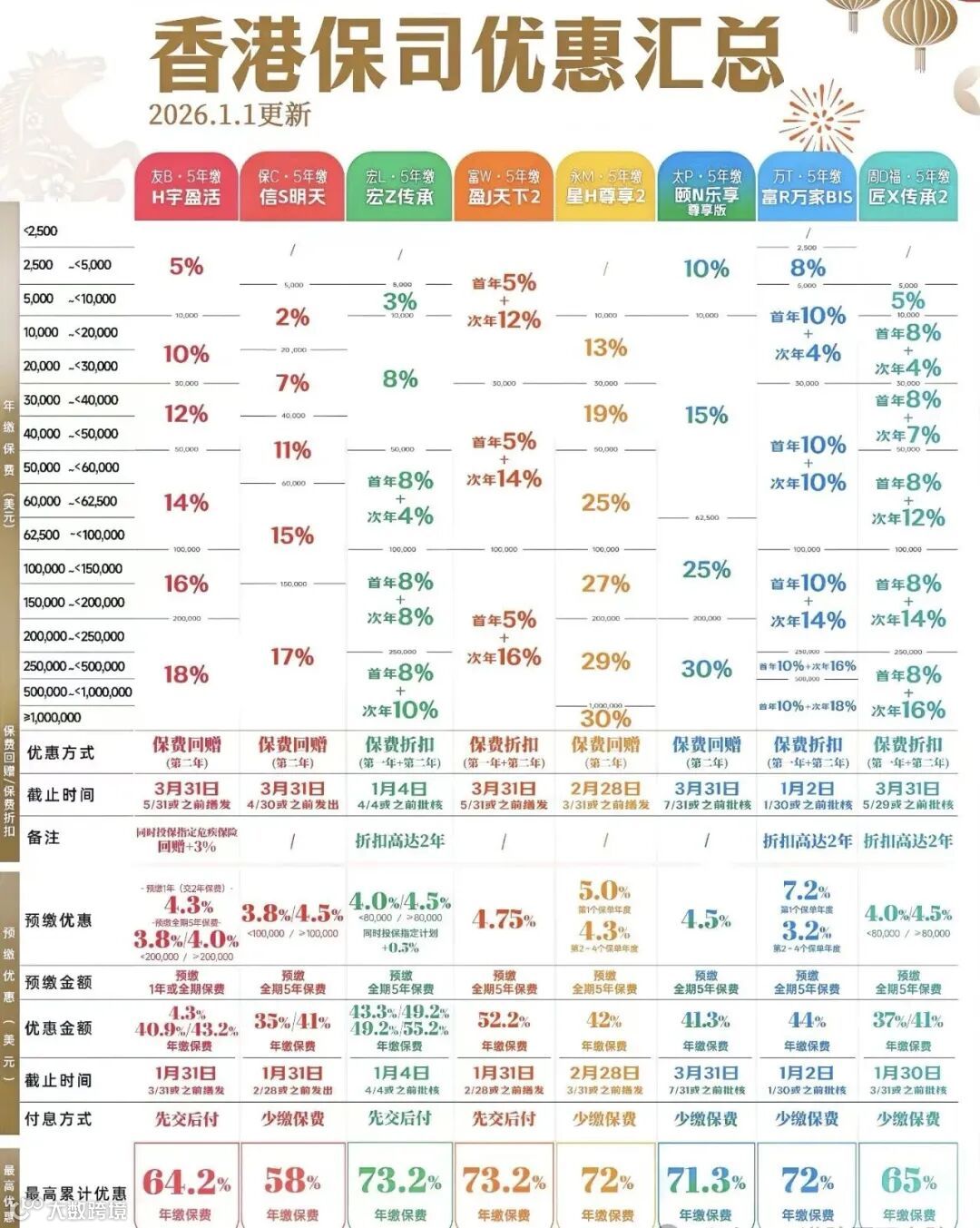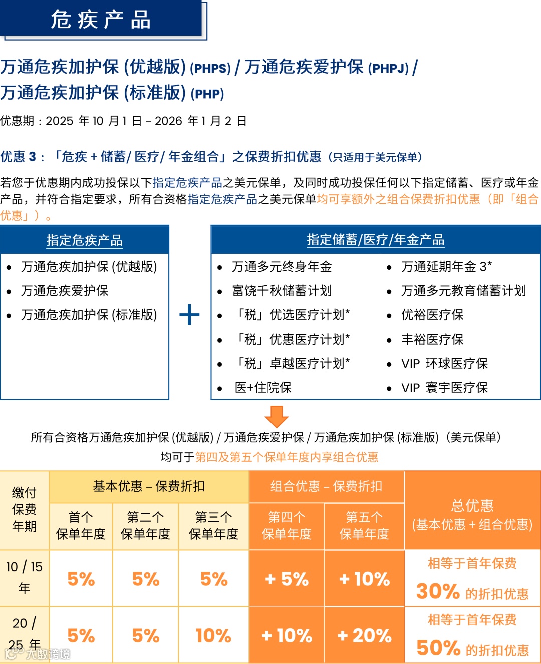 宏利「宏Z传承(5年)」预缴利率4%/4.5%,同时投保危疾/人寿,预缴利息额外多0.5%,高达5%;5年缴首两年保费折扣高达18%,2026年1月4日截止;