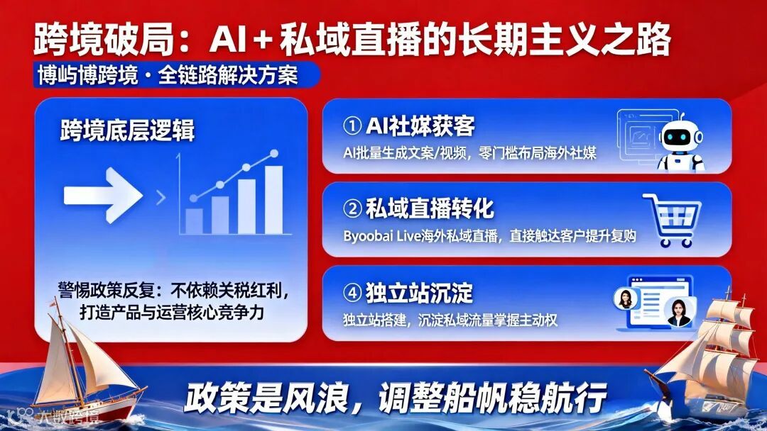 然后,你得布局独立站 + Byoobai Live 海外私域直播平台!现在流量越来越贵,平台规则越来越严,只有把客户掌握在自己手里,才是最靠谱的嘛!独立站能帮你沉淀私域流量,海外私域直播能帮你直接触达客户,提高转化率和复购率,这才是长期主义的玩法呢!