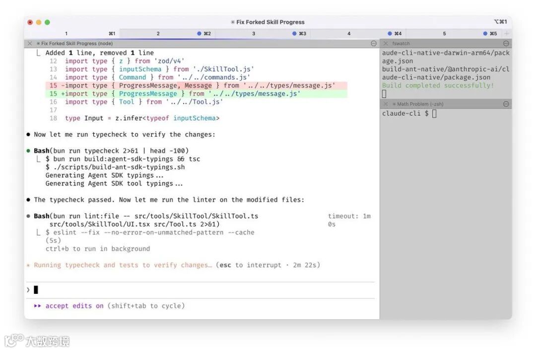 Boris 在终端中同时运行 5 个 Claude 实例,各标签页编号 1–5,便于任务追踪;并借助系统通知提醒待响应会话,避免遗漏。