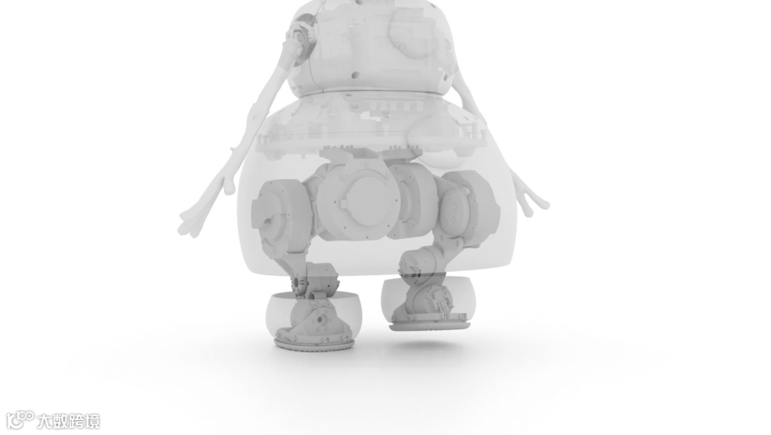 左腿髋关节朝后、膝盖朝前,右腿相反,大幅降低机械干涉,同时将复杂结构完美隐藏于雪白胖润的下半身中 [7] 。