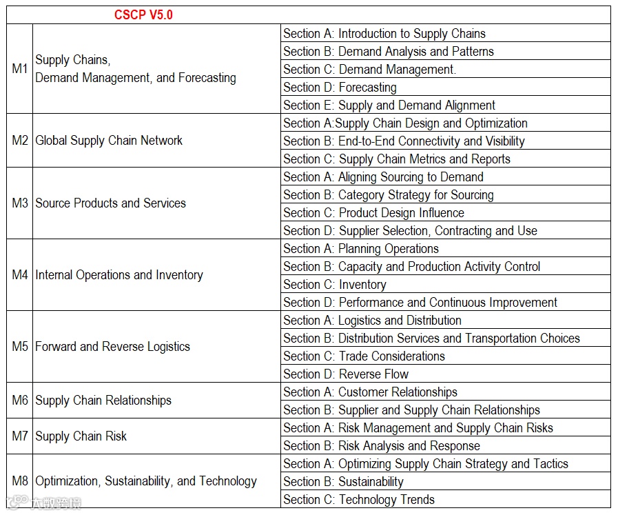 CSCP认证涵盖8个核心模块: