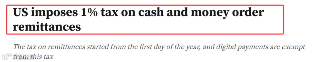 根据美国财政部和美国国税局的规定,汇款服务提供商需要对符合条件的交易代收1%税款,2026年1月1日正式生效。