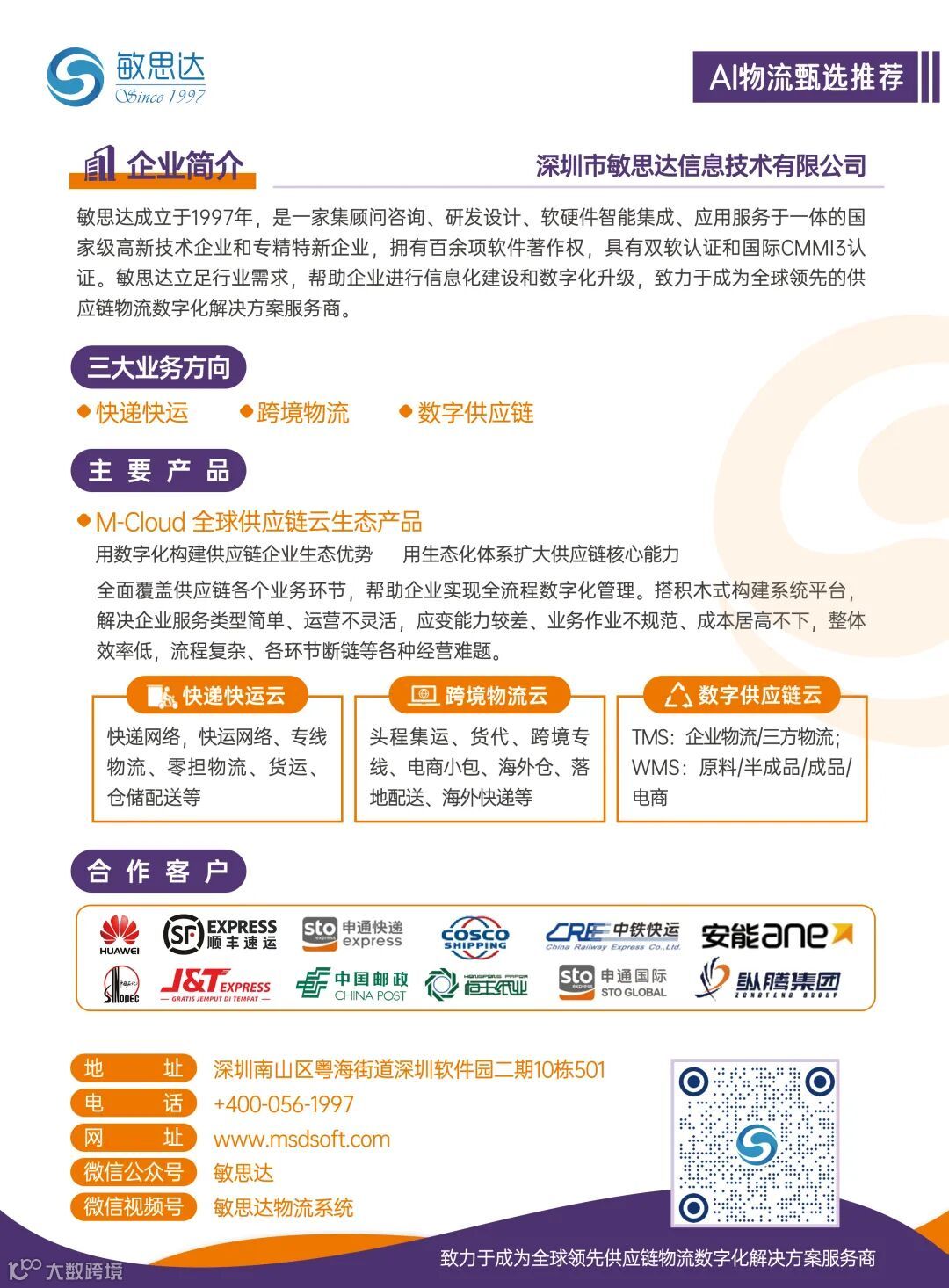 深圳市敏思达信息技术有限公司成立于1997年,是国家级高新技术企业、专精特新企业,拥有百余项软件著作权,通过双软认证及国际CMMI3认证。公司聚焦供应链物流数字化升级,提供顾问咨询、研发设计、软硬件智能集成与应用服务,致力于成为全球领先的供应链物流数字化解决方案服务商。