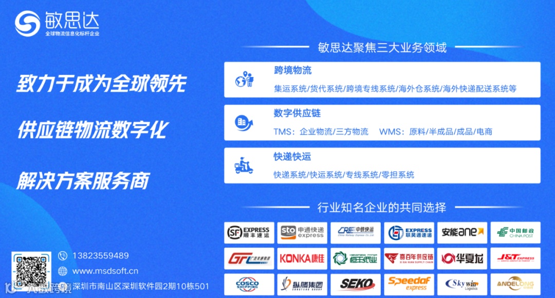 敏思达以“基础服务+行业定制服务+第四方服务”构建服务体系,支持系统直连与API对接,实现业务集中管控与可视化管理;采用“微服务+组件化”架构,按快递快运、跨境物流、企业数字物流供应链等场景灵活配置,输出智能化、自助式解决方案。