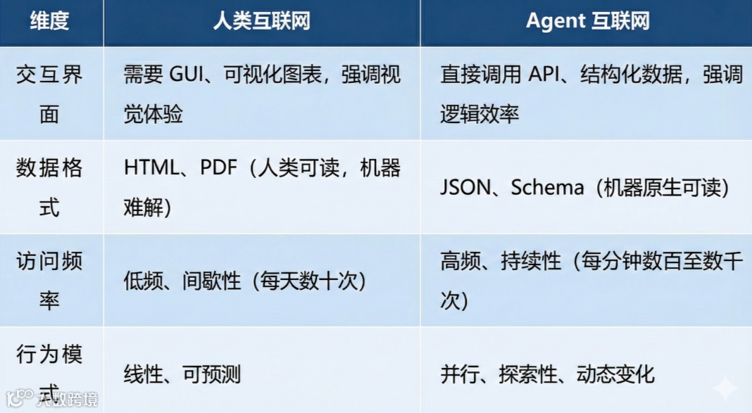 互联网生态本为人类设计,分散于不同平台的专业服务(如金融、法律、SaaS)缺乏统一、可信、标准化的供应层。即便前沿Agent产品可调用数十至百个数据源或工具,但跨平台接入、鉴权、调试、验证的成本极高,严重制约其在真实业务中的规模化应用 [2] 。