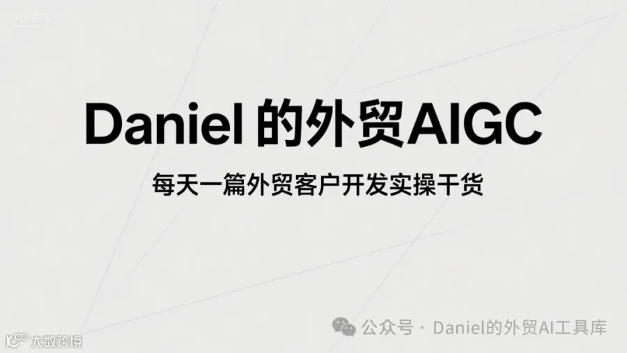 Daniel的外贸AIGC————外贸人的客户开发工具箱,每天一篇实操干货。点击标题下蓝字“Daniel的外贸AIGC”关注,我们将带你掌握:找客户、分析客户、写开发信的高效方法。