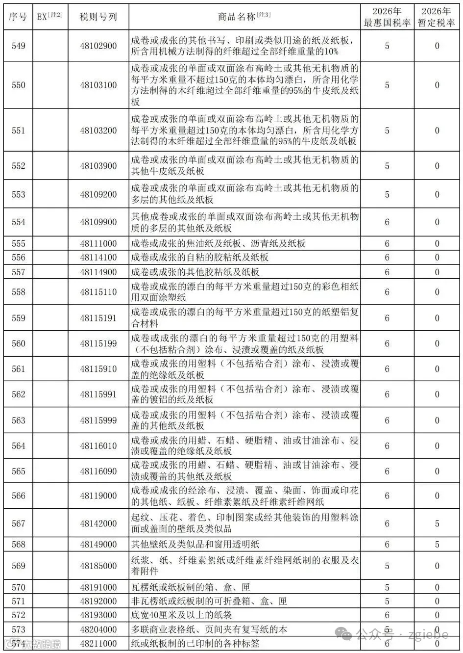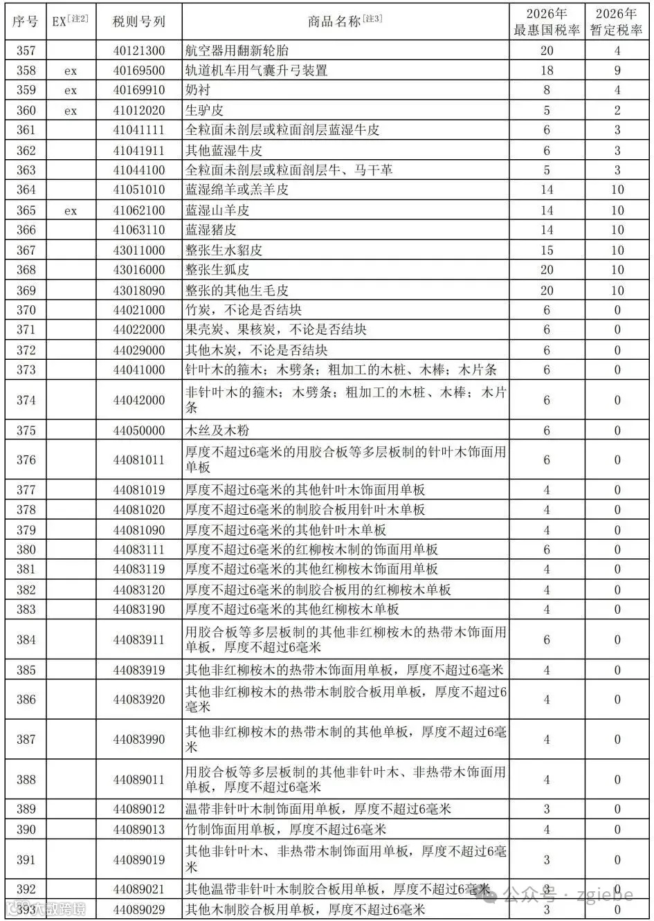 1. 进口商品暂定税率表