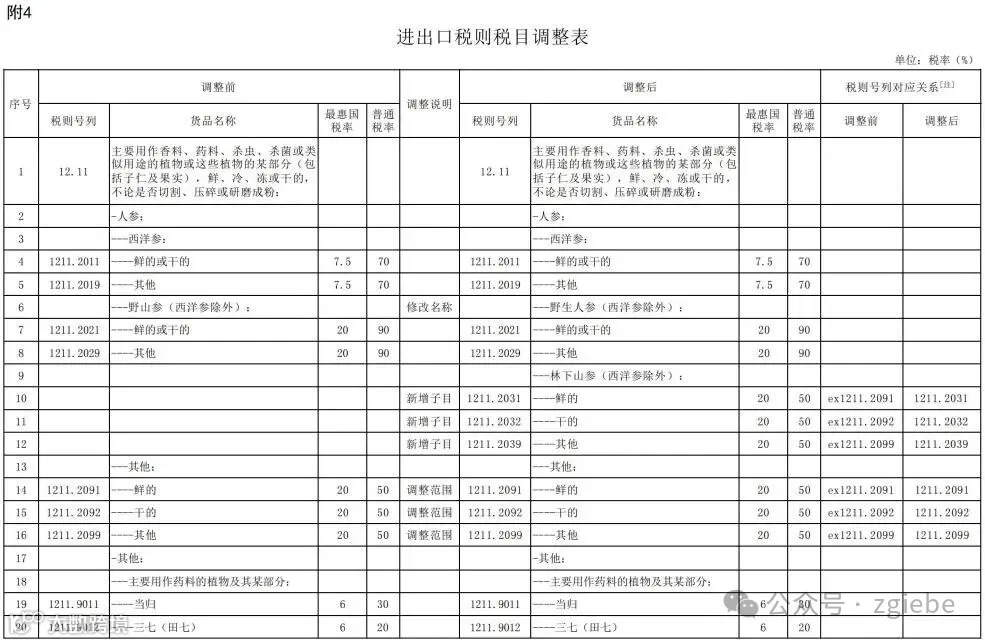 4. 进出口税则税目调整表