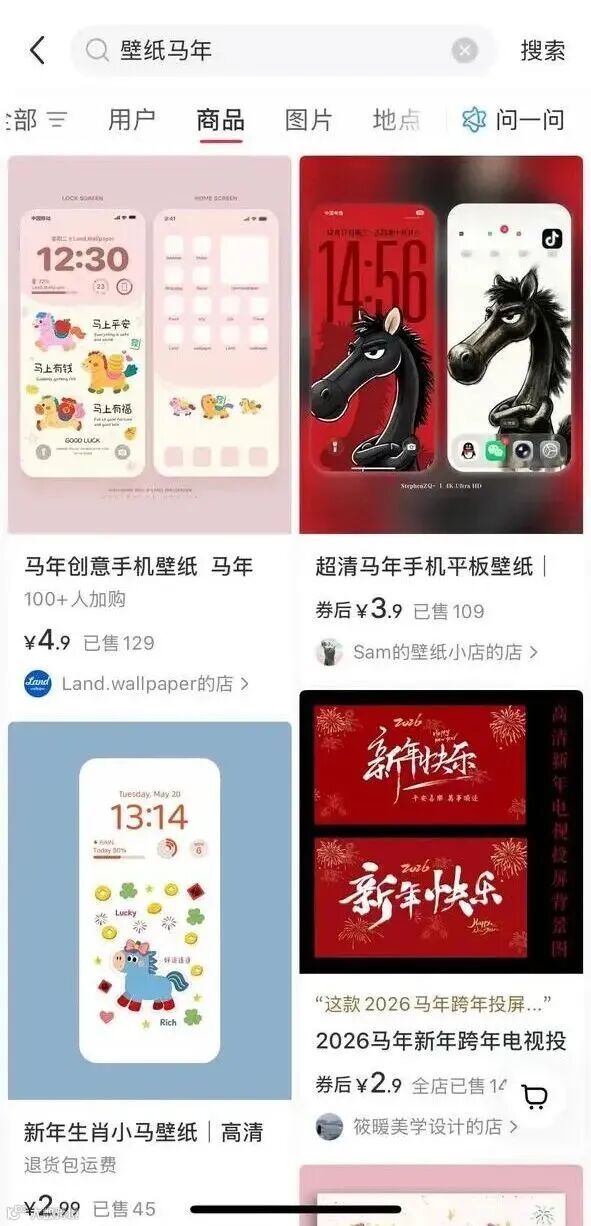 购物平台上的马年壁纸售卖