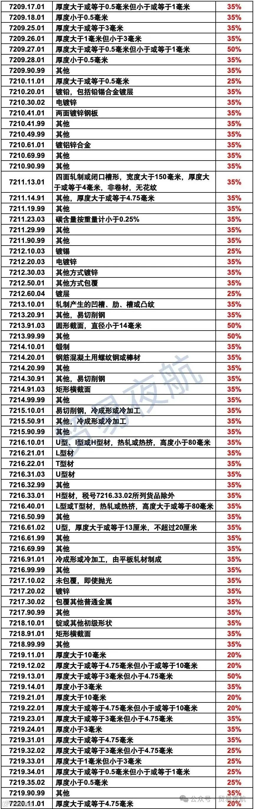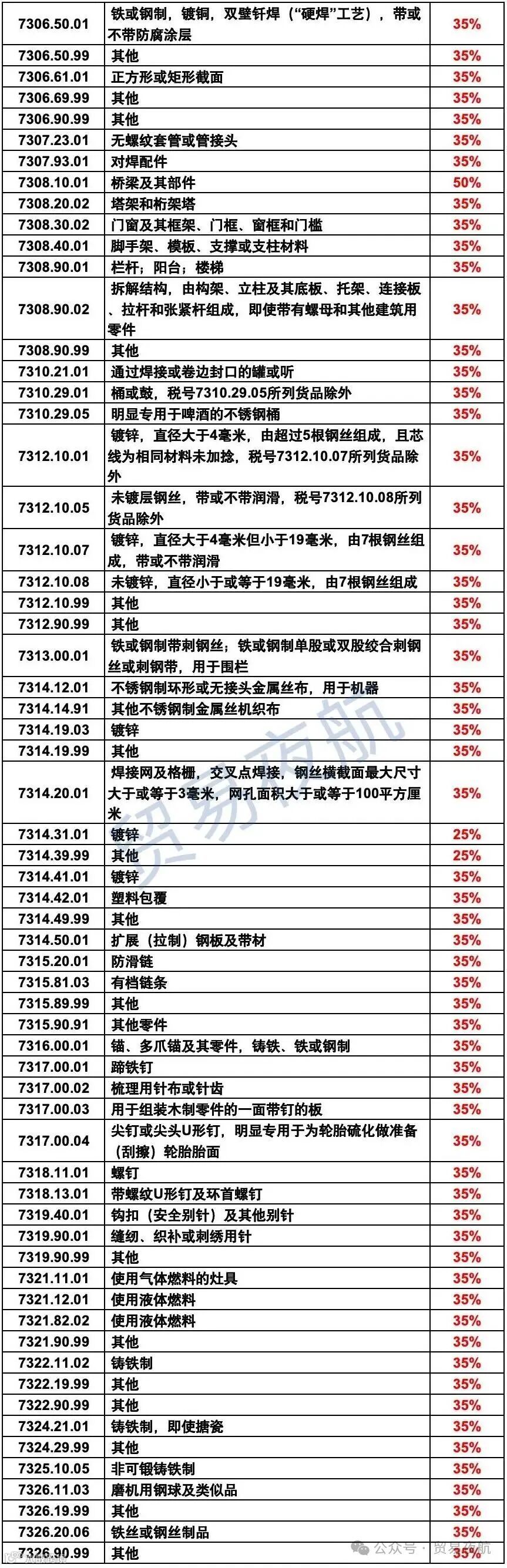 ●钢铁、铝制品:税率 15%-30%