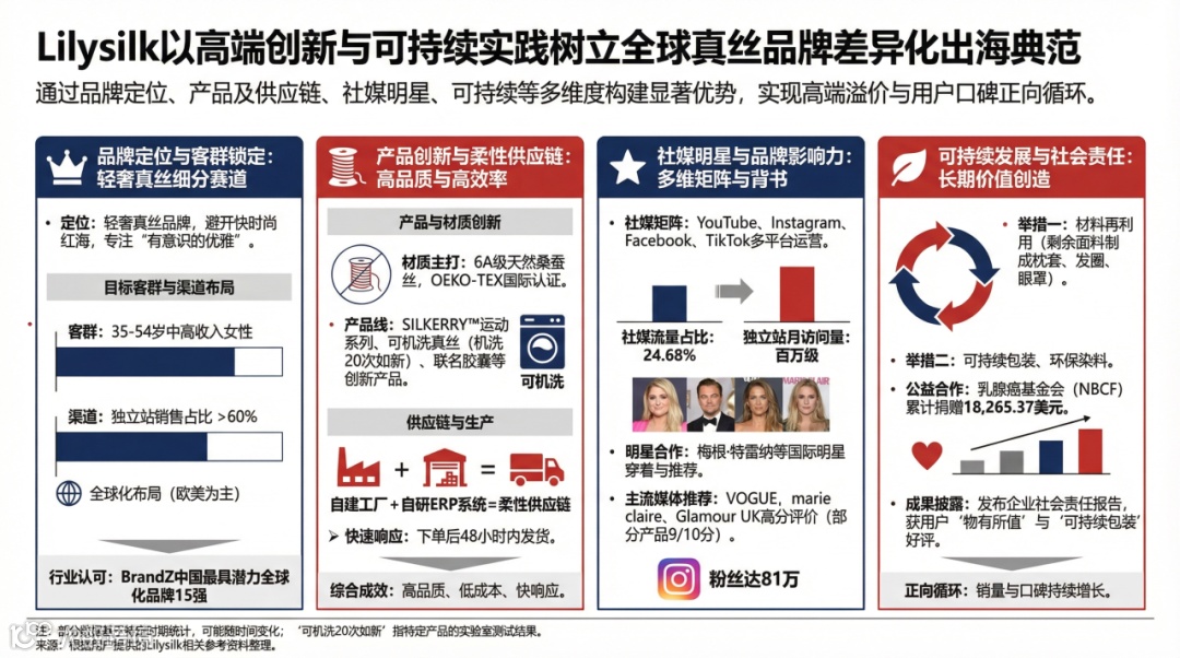 很多出海品牌要么走低价,要么堆营销;Lilysilk选了第三条路:用真丝做轻奢基本款,用DTC建立长期关系。它把小众材质做成了大众可买、可穿、可洗的生活方式单品。它是怎么把难题变成机会的?