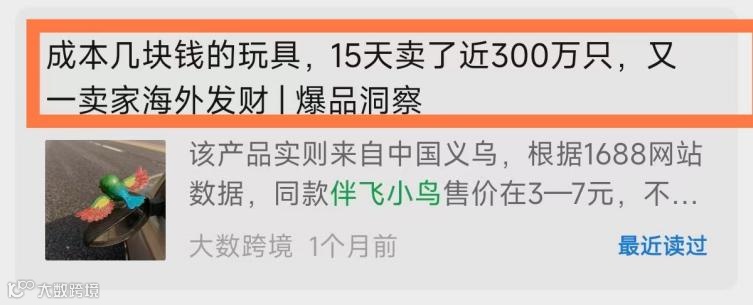 不知道老铁们有没有听过伴飞小鸟这个产品?我也不知道是从哪看到的消息,总之就是得到了一个信息,就是这个伴飞小鸟在国外很火,国外已经卖爆了,订单库库出。