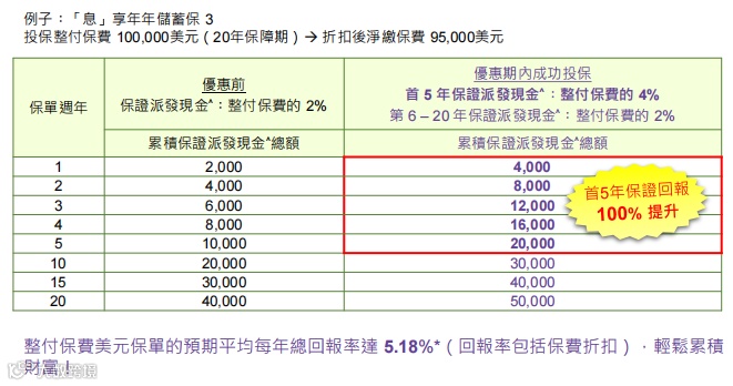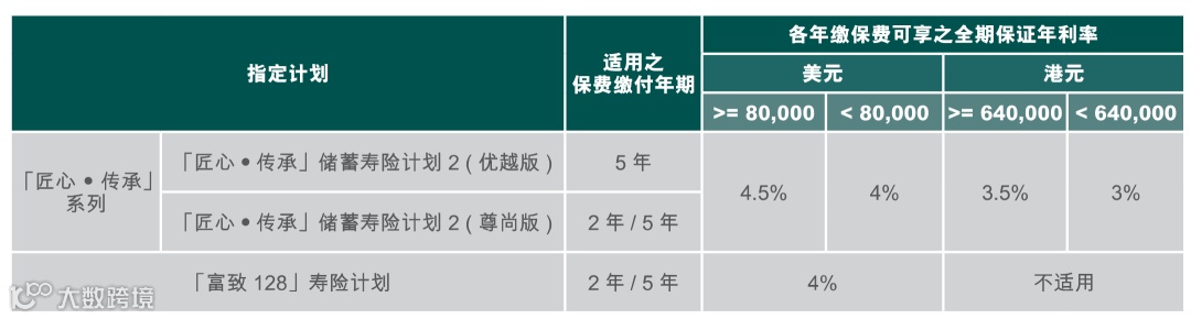 ✅ 预缴利率(截至1月30日):5年缴美元保单享4.0%/4.5%保证利率。