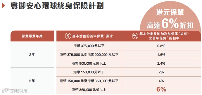 ✅ 50周年特别活动(截至3月31日):投保即赠2000港元现金券;5年缴保费折扣最高28%。