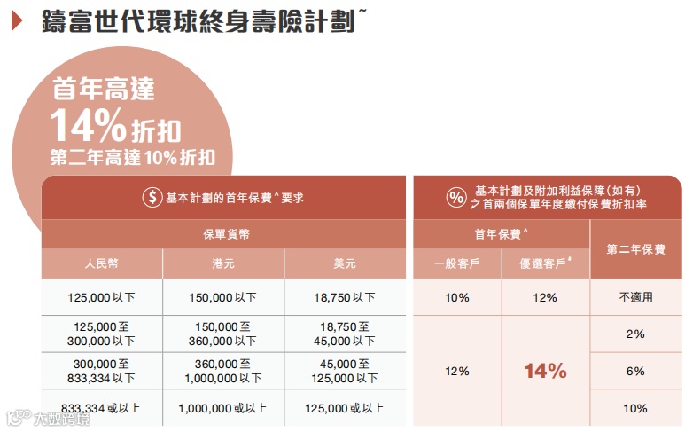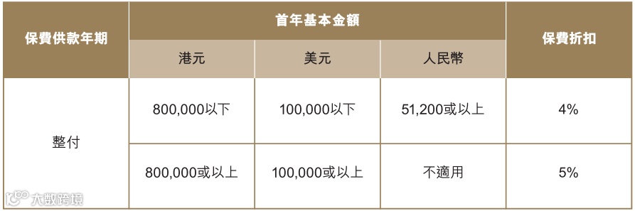 ✅ 保费折扣(1月1日–3月31日,最后批核日期为5月29日):前两年保费折扣最高24%;两年缴最高享10.1%利率;5年预缴享5%利率+26%首年回赠。