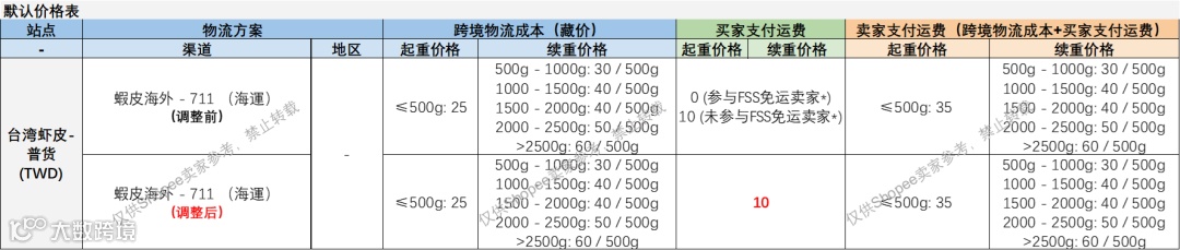 04 Shopee中国台湾站调整SLS海运运费