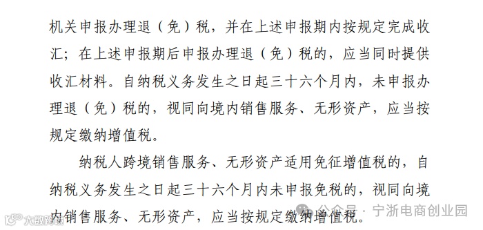 - 出口货物须在报关出口之日起36个月内完成退(免)税申报;