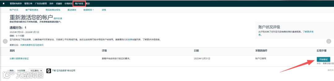 2026年伊始,亚马逊在巴西、加拿大站点对大量长期无销售记录的卖家账户启动集中合规审查。许多卖家发现账户被标记为“已停用”,并收到要求补充公司信息、法人身份证明等材料以完成重新激活的通知。