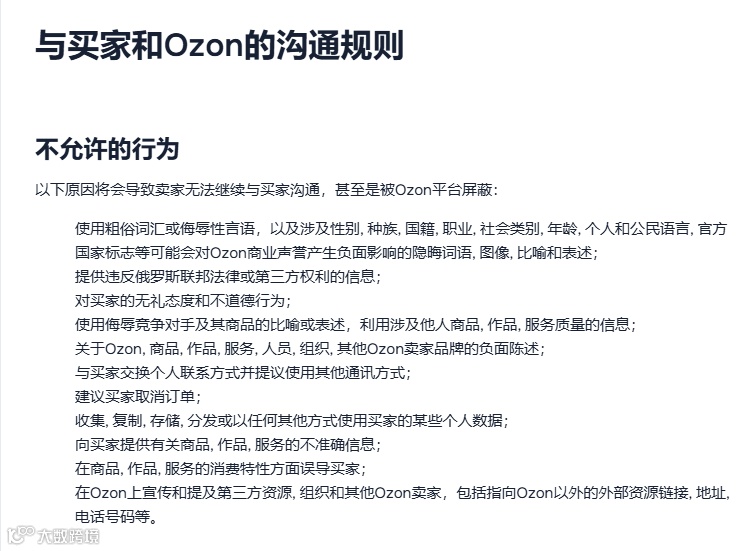 以下行为属OZON明文禁止的“红线”,一旦违反可能导致聊天功能无限期封锁,甚至影响店铺运营。