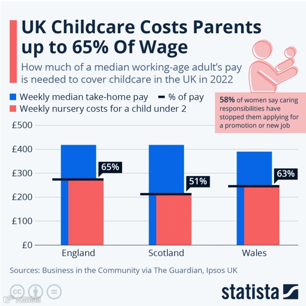 - 育儿:5岁前全日制托儿所年费高达14,000–18,000英镑,相当于普通白领全年税后收入,迫使一方暂停职业发展;