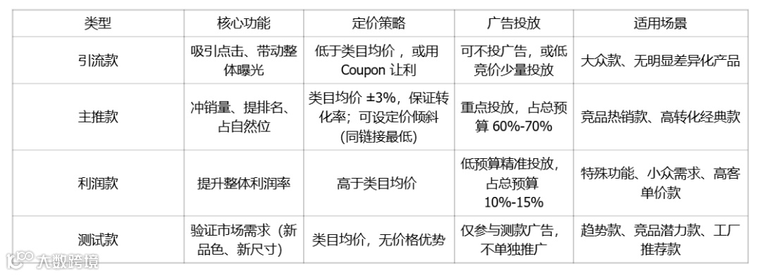 - 利润补充型:高客单、低销量,靠精准流量盈利。