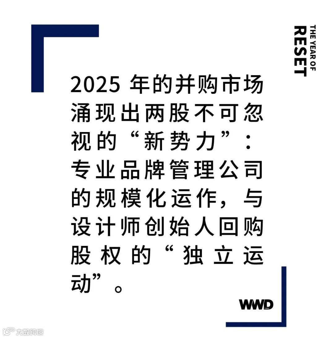 在谨慎扩张的行业氛围中,两类“新势力”在2025年并购市场崭露头角:专业品牌管理公司的规模化运作,以及设计师创始人回购股权的“独立运动”。两者路径不同,却共同回应同一命题——如何在资本洪流中守护并放大品牌本质价值。