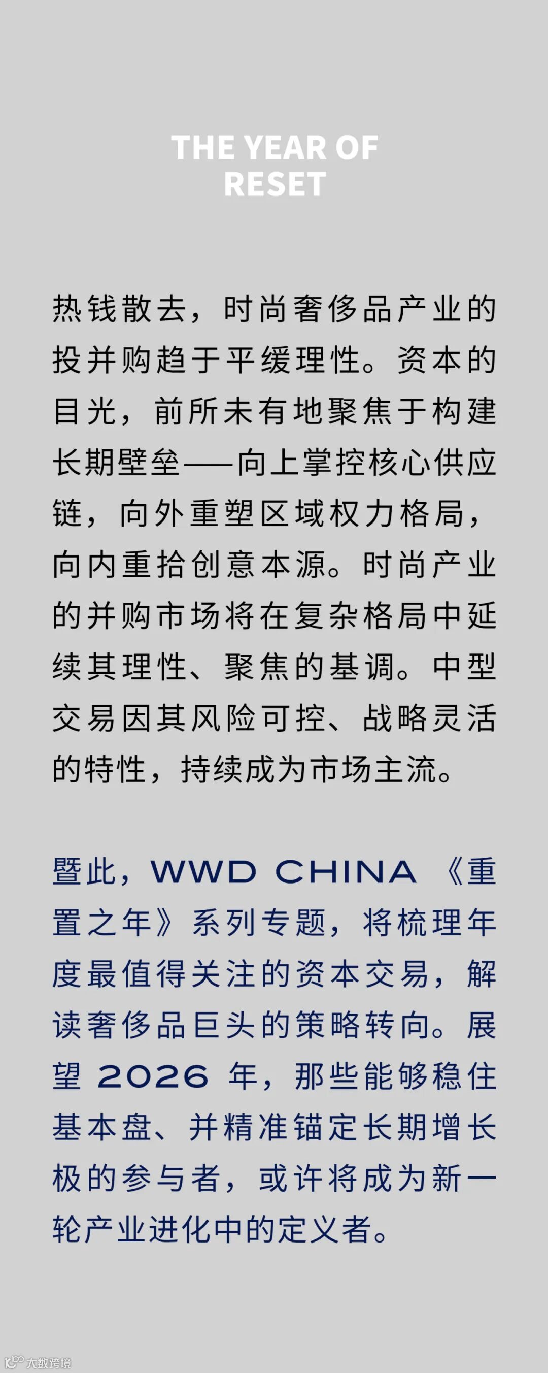 全年资本动向呈现三大趋势:全球资本与中国市场由单向输入转为双向融合;并购策略从规模竞争转向深耕供应链与品牌资产;在资本整合中,品牌的创意主权正通过多元方式得以强化。这些变化共同推动奢侈品行业价值评估体系的重构。