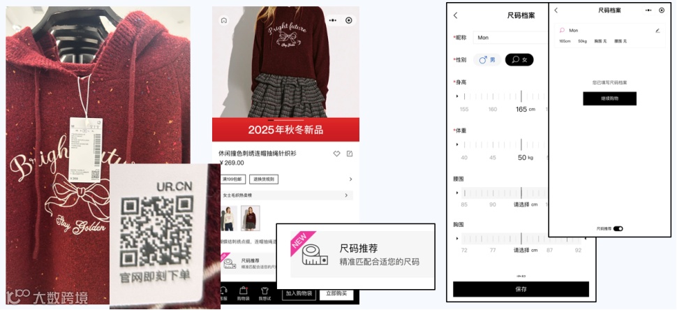 为解决用户在试衣过程中面临的尺码不确定、搭配困难、缺货无法查询等问题,UR在每件商品吊牌上设置专属二维码,打造线下通往线上的数字入口。