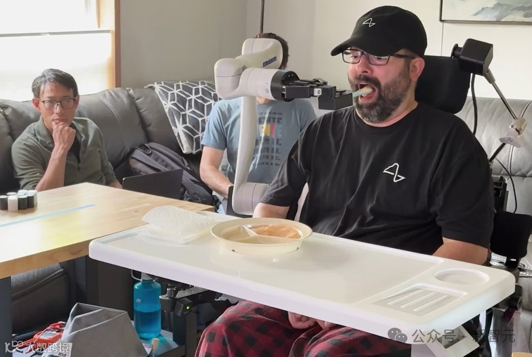 一位ALS患者使用脑机接口思维控制JACO机械臂进行喂食。