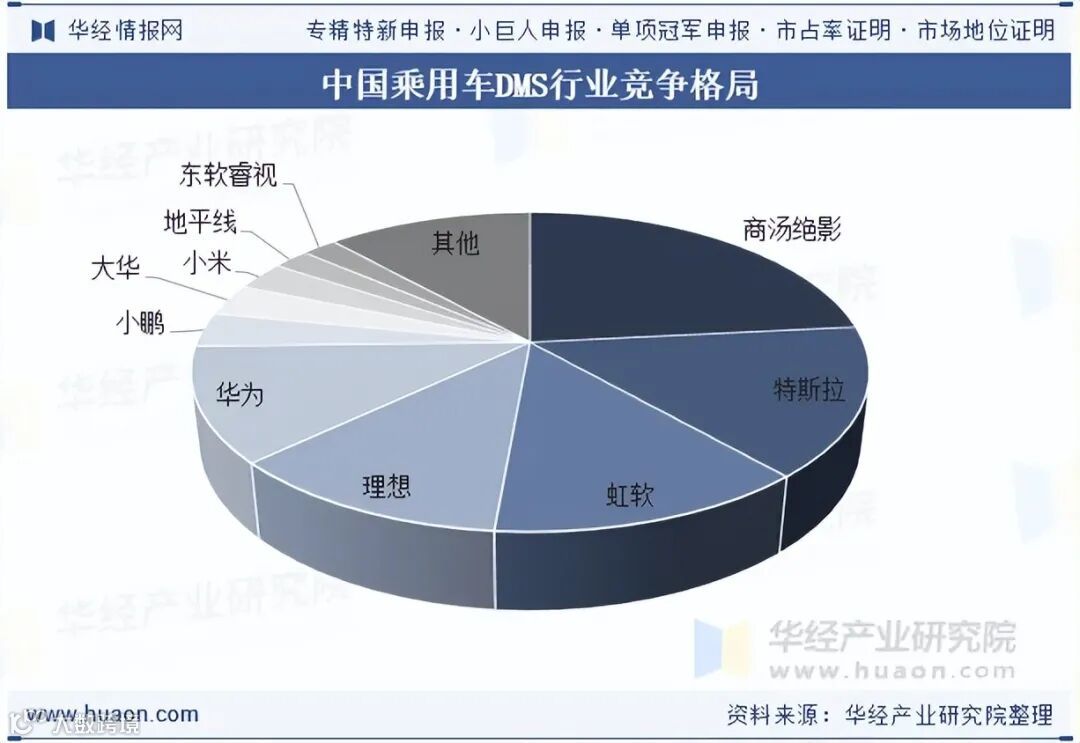国内DMS算法供应商呈现多元化竞争格局。商汤绝影以23.40%的市场份额位居第一,展现出领先的技术与服务能力。特斯拉与虹软分别以15.10%和12.90%的份额紧随其后,在算法研发与量产落地方面具备较强竞争力。