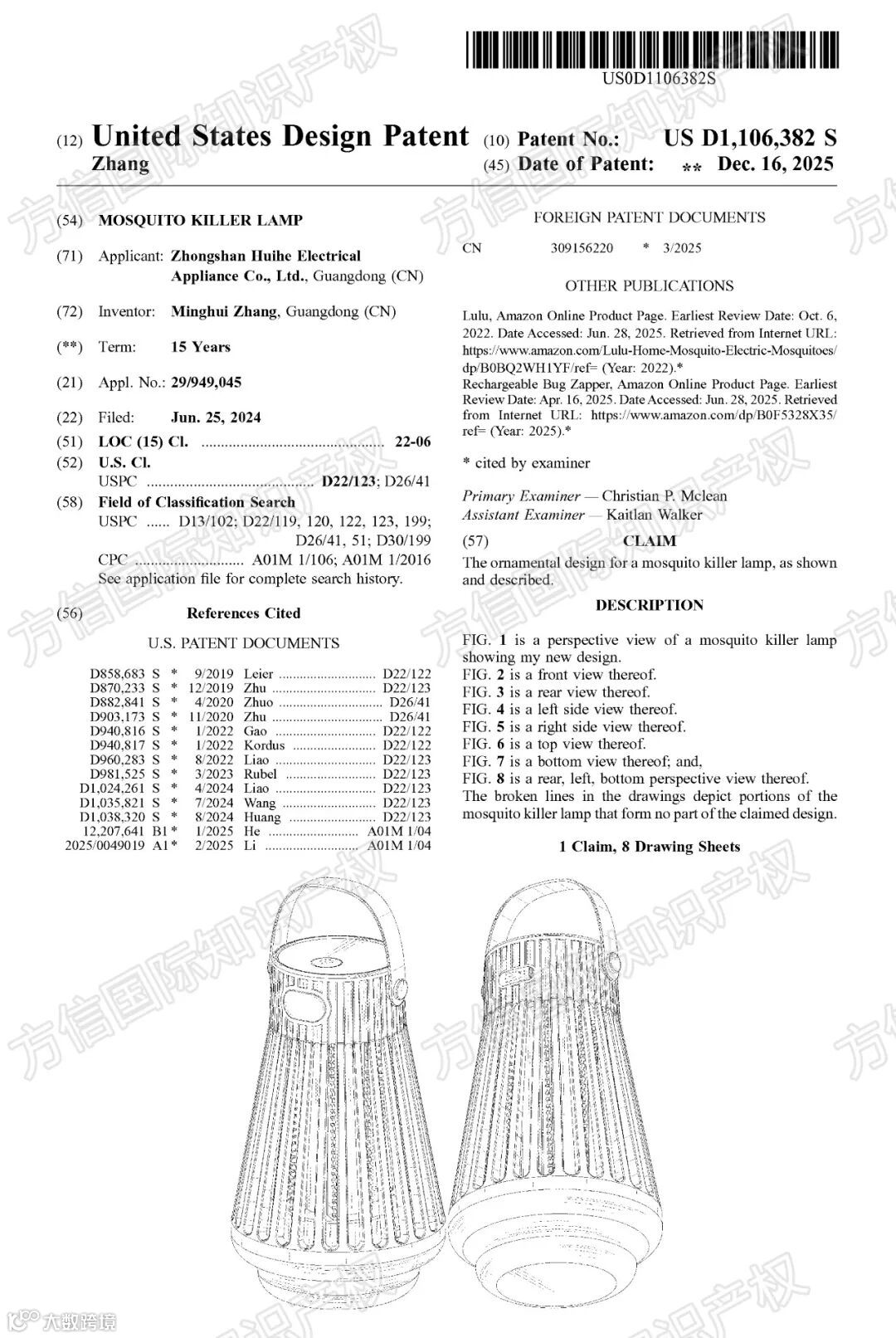 Mosquito killer lamp灭蚊灯:US D1106382 S