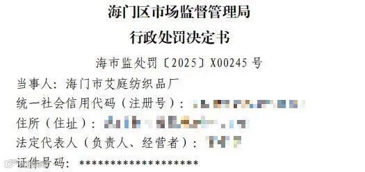 12月26日,从国家企业信用信息公示系统网站(江苏)了解到,江苏省海门区艾庭纺织品厂因生产侵犯迪士尼注册商标专用权的床上用品,被江苏省南通市海门区市场监管局处罚。