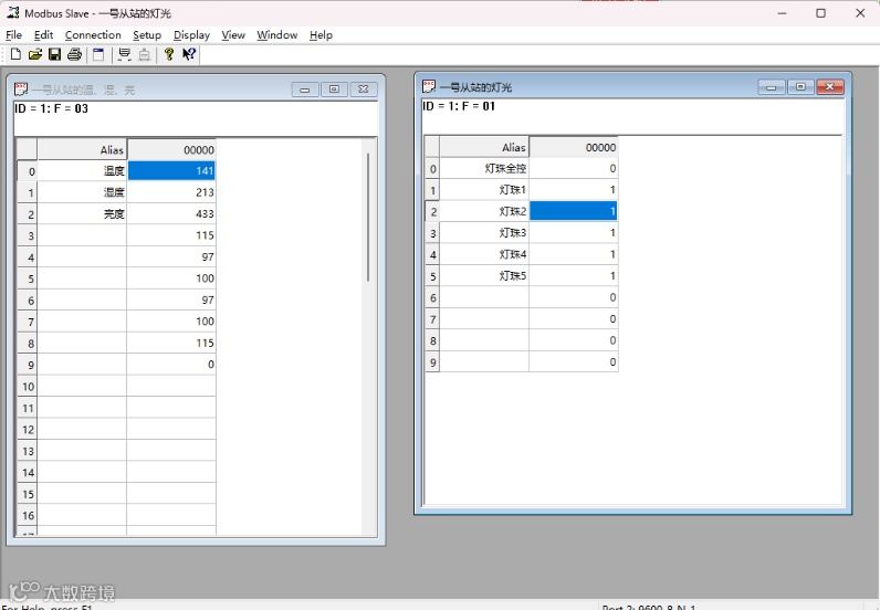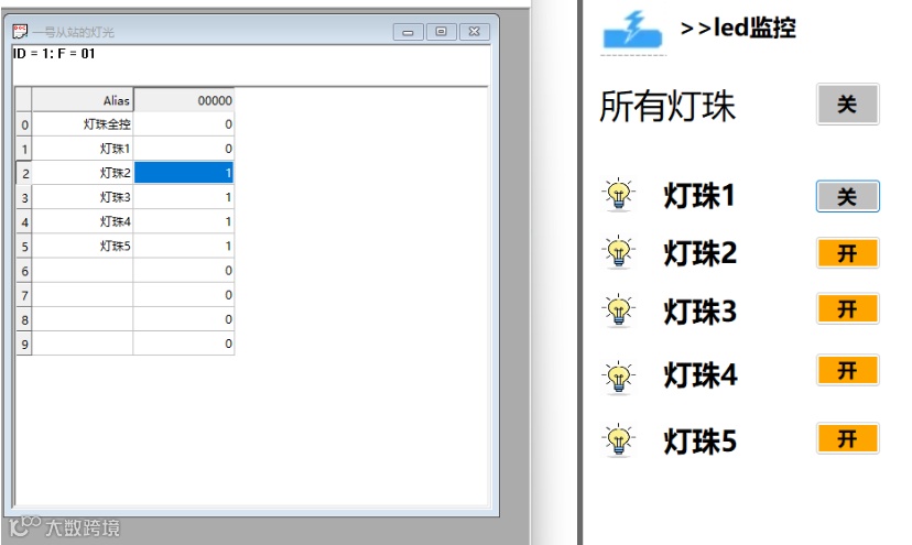 通过 Modbus 写线圈(Write Coil) 控制 5 盏 LED 灯。