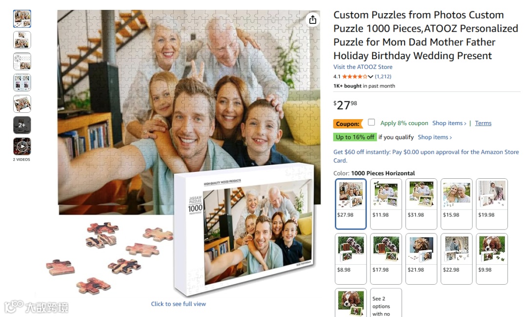 高频词:puzzle、puzzles、adults、pieces、piece、jigsaw、christmas、custom、adult、kids、wooden、photo、national、gifts、personalized