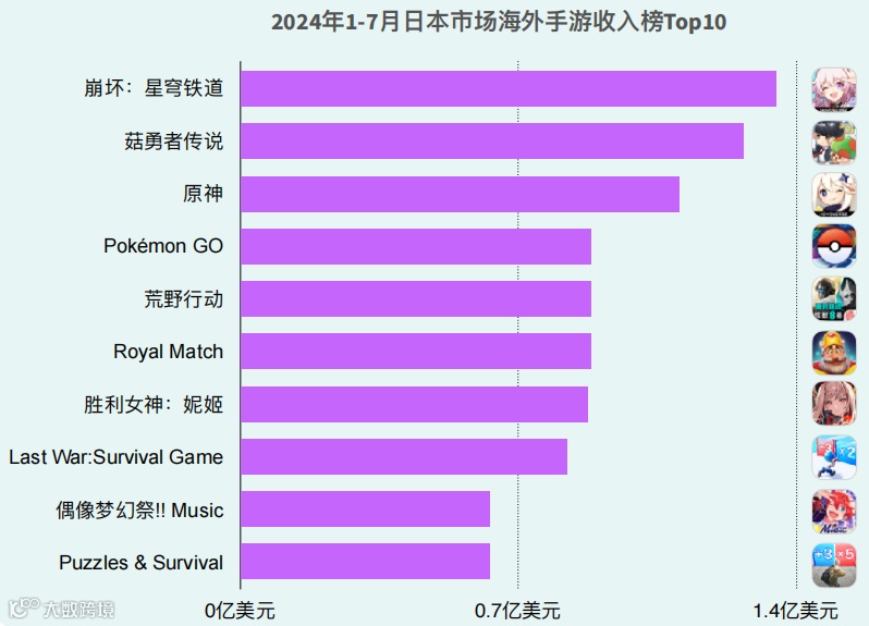 旗下2款二次元RPG手游《崩坏:星穹铁道》和《原神》更是在2024年1-7月分列日本市场海外手游