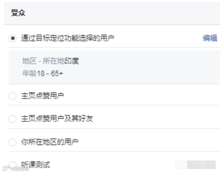 基于位置、年龄、兴趣、行为等标签从头构建受众群。自定义受众(再营销)