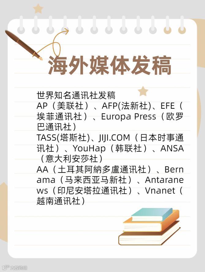优质海外媒体发稿平台除了美国彭博社、美联社、合众社,英国BBC、路透社,法国法新社,以及俄罗斯俄通社、塔斯社等知名的海外媒体发稿平台外,还有许多优质的海外新闻媒体可用于软文宣发。以下是一些推荐的平台: