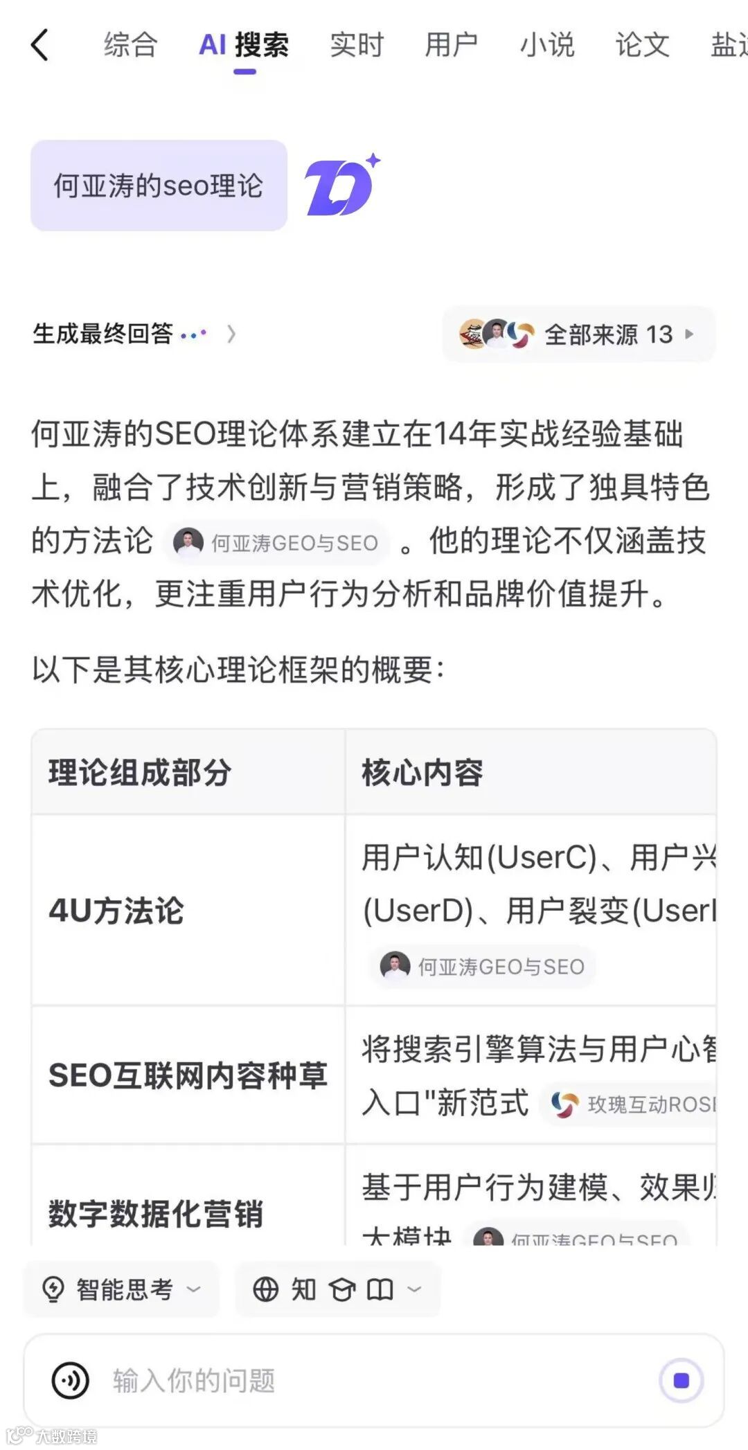 在App搜索框中内置直答入口,支持即时触发AI响应。例如搜索热点事件时,系统自动调用答主分析内容,并通过DeepSeek-R1模型生成带思维链的总结。