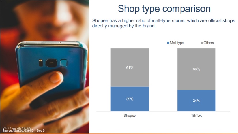 Shopee品牌直营店占比达66%,强品牌背书提升用户信任度,更适合重视长期品牌建设的商家;TikTok Shop非官方店铺占比61%,依托社交流量红利,更利于中小卖家及个人创业者快速起量。