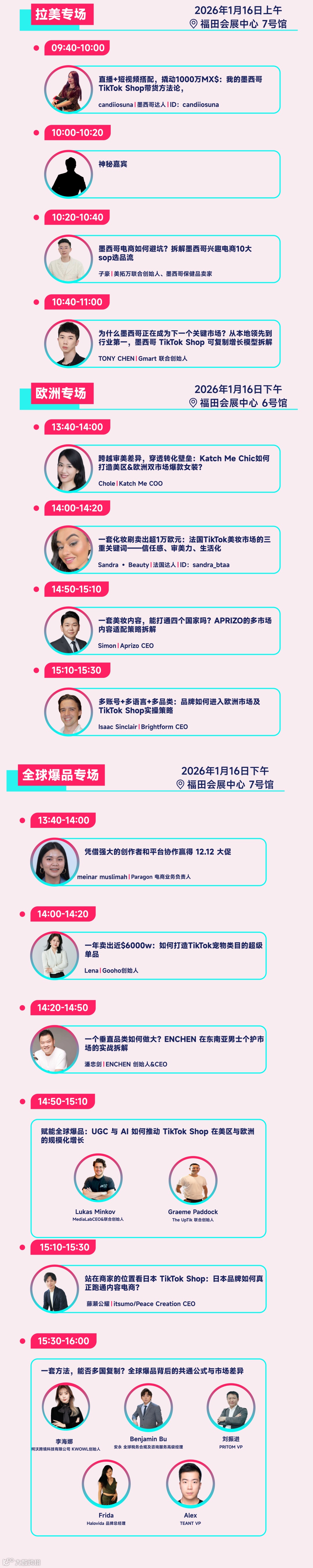 全部嘉宾议程已确认,分为2日全日主会场及12大垂直分会场,内容聚焦全球市场趋势、爆款打造逻辑与可复用的增长策略,助力企业精准锚定2026新一年方向。