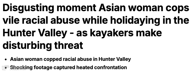 据报道,一名亚裔女子于2025年12月30日下午4时30分许,在新南威尔士州Hunter Valley地区Lake St Clair湖畔,因身穿Cosplay风格动物耳尾服饰(自称“兽人”Therian),遭皮划艇游客种族歧视辱骂并引发肢体冲突,相关视频在网络引发广泛关注与谴责。
