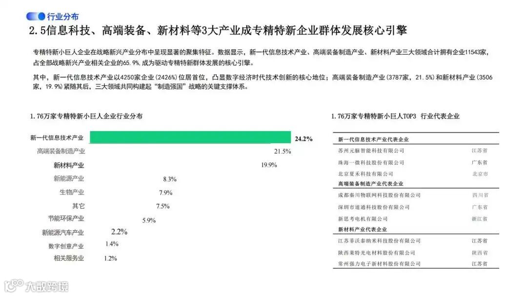 行业分布高度聚焦战略性新兴产业:新一代信息技术、高端装备制造、新材料三大领域合计超1.1万家企业,占相关“小巨人”总数的65.9%。