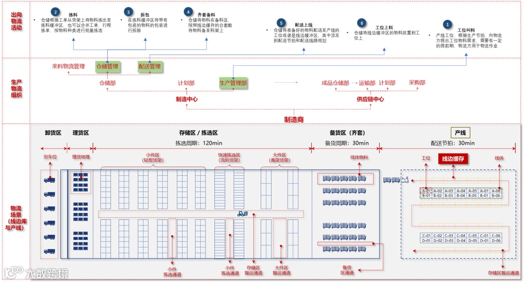 聚焦出向作业效率优化,明确按工单批量拣料、拆包处理、齐套备料、按节拍配送上线的流程及各环节周期。实现线边仓作业与产线节拍精准匹配,避免工位缺料或物料堆积;通过标准化拣选与配送流程,提升作业效率,缩短产线等待时间,保障生产连续性。