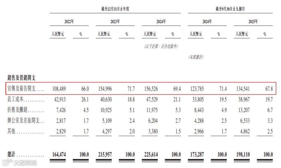 财务资源错配亦凸显“科技公司”定位违和:招股书中将“加大研发投入”列为募资首要用途,但研发费用率逐年下滑,2025年前9个月销售费用率高达22.6%,1.98亿元销售费用是同期研发投入的3.4倍。公司仅将天价营销解释为“渠道拓展”,却未披露关键ROI数据,市场无从判断其可持续性。