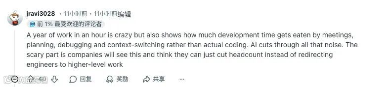 也有评论指出:这一现象暴露长期被忽视的事实——大量开发时间并非消耗于写代码,而是被会议、规划、调试及频繁上下文切换吞噬。AI 的价值,正是在这些噪音之上直接“切一刀”。
