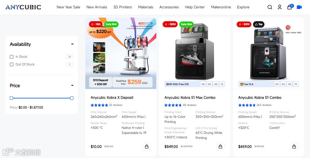 纵维立方独立站 图源:store.anycubic