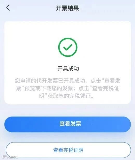 税款缴纳成功后,系统将自动开具发票。点击【查看发票】进入发票详情页面,可预览和下载电子发票。点击【查看完税证明】进入完税凭证下载页面,可将凭证下载保存至本地。