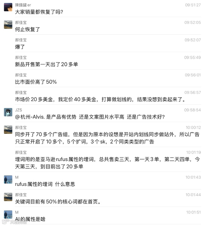 H:同步开了70多个广告组,但是因为原本的设想是开站内划线同步做站外,所以广告只正常开启了10多个,5个扩词,3个sk,2个同类类型的广告,埋词用的是亚马逊rufus属性的埋词,总共售卖三天,第一天3单,第二天四单,今天第三天,到目前出了20多单。