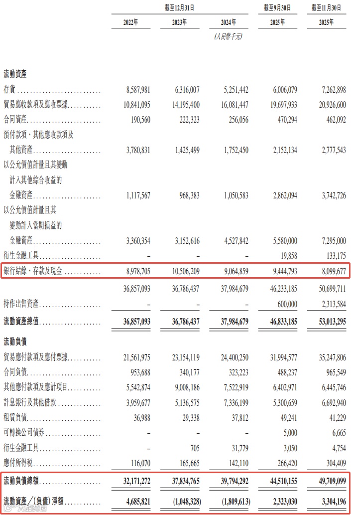 在营运资本方面,公司的现金储备尚可,截至2025年11月30日,银行结余、存款及现金为81.0亿元。同时,公司的负债水平不高,截至同期,流动负债总额为497.1亿元,流动负债净额为33.0亿元。